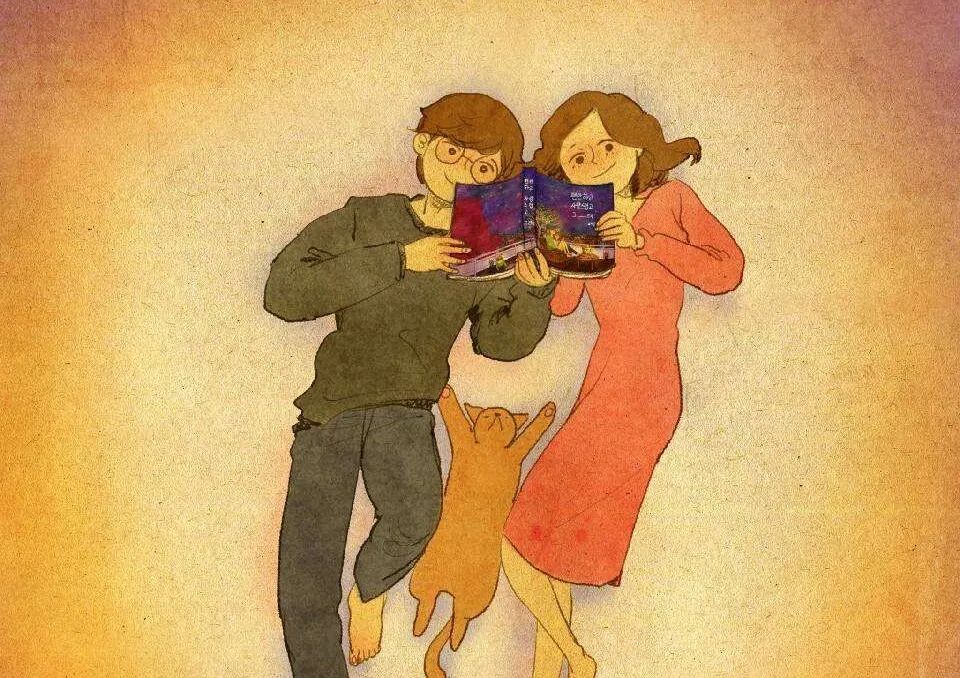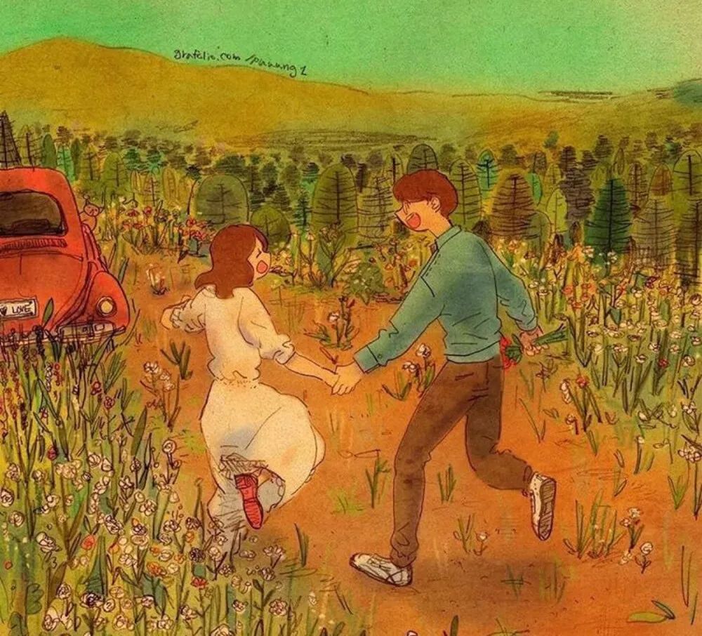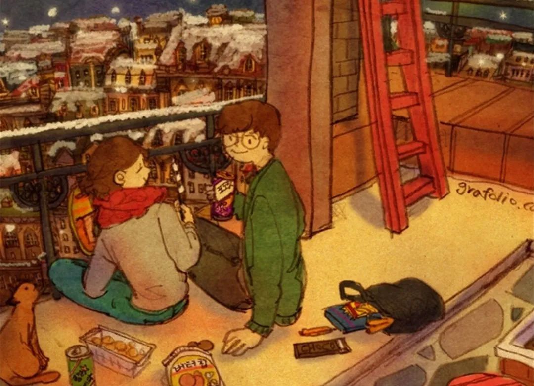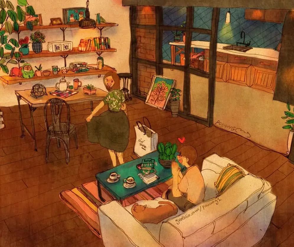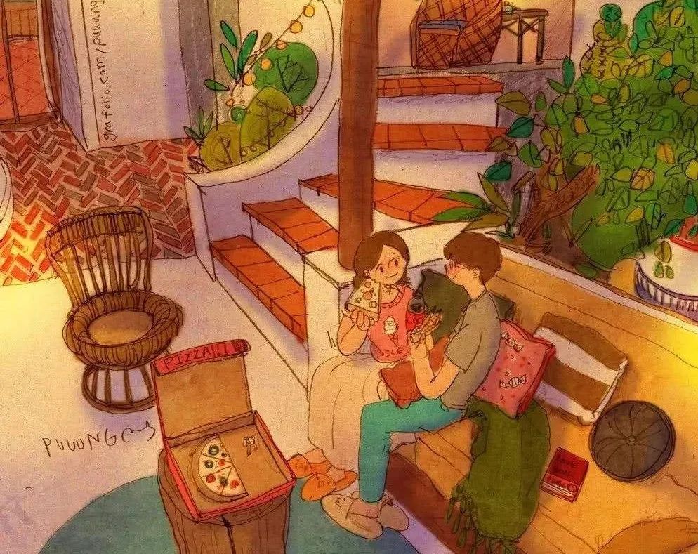 文中插图选自韩国插画师puuung的暖心爱情故事插画。