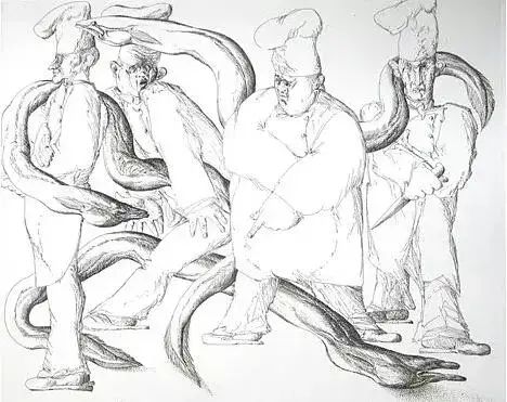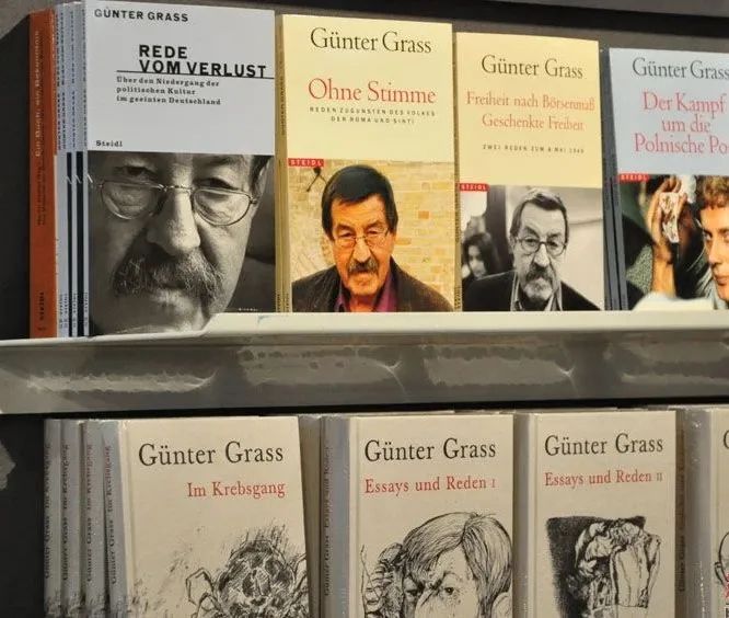 德国著名作家、诺贝尔文学奖获得者君特·格拉斯(Günter Grass,1927—2015),虽然是以由长篇小说《铁皮鼓》《猫与鼠》《狗年月》组成的“但泽三部曲”闻名,但他的文学生涯是以写诗为开端的。他的诗集有《崇拜玛利亚》(1973)、《啊,比目鱼,你的童话有个坏结局》(1983)、《亮出舌头》(1988)、《四十年》(1991)、《十一月的国家》(1993)、《为不读书的人捡到的东西》(1997)等。格拉斯的诗歌都是以日常生活为题,散文式的语言风格,以幽默讽刺见长,长短不一,不带激情,以诗配画,或者诗画合一。