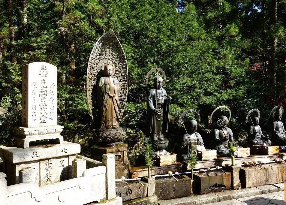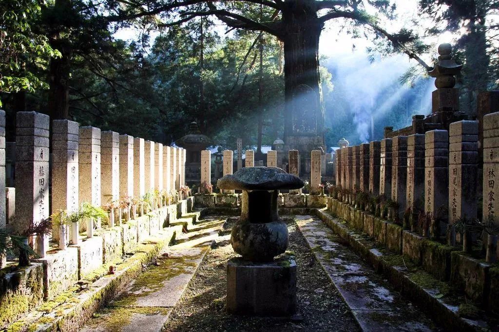 和尚们在空海的墓葬区域诵经,还有一些和尚给这位圣人送餐;根据真言宗的说法,他并没有死,而是安歇着在恒久冥思,至今已有一千一百多年了。