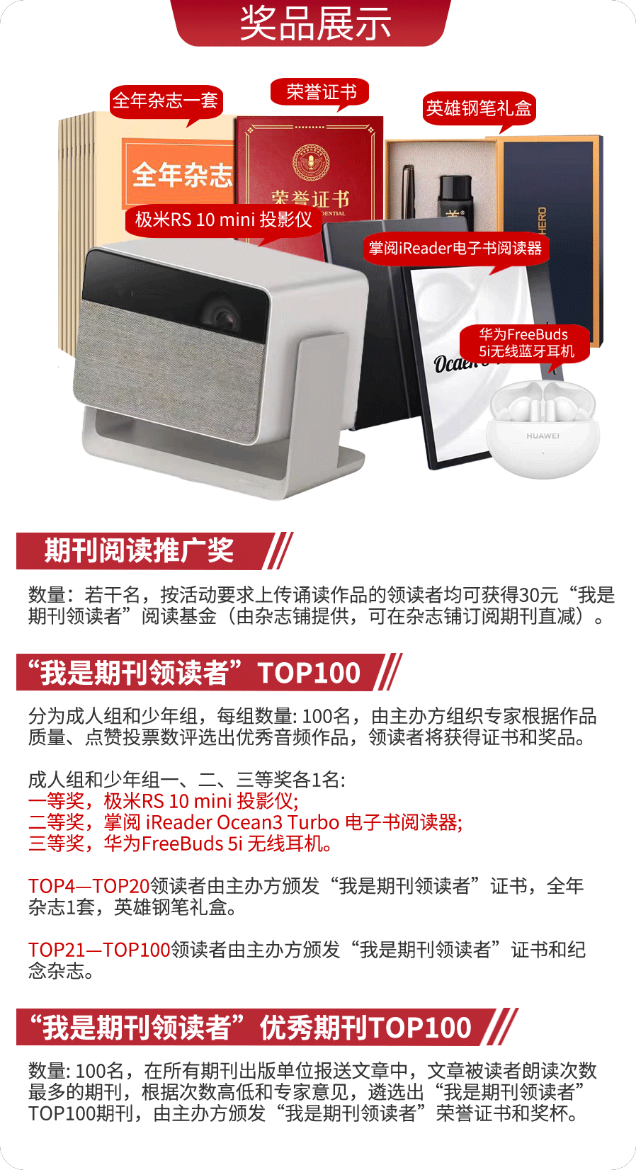 全国各年龄层大众皆可参与,诵读你喜爱的期刊文章,就有机会赢取丰厚大奖!