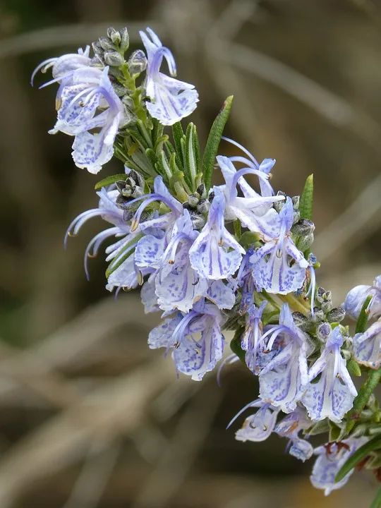 *迷迭香,它的英文名字Rosemary是由两个拉丁文ros和marinus演变而来的,意指“大海之朝露”。迷迭香原产于地中海沿岸,属于常绿灌木,夏天会开蓝色小花,看起来像小水滴一般,所以被称之为“海中之露”。传说迷迭香的花本是白色,圣母玛利亚带着圣婴耶稣逃往埃及途中,曾将蓝色罩袍挂在迷迭香树上,从此,迷迭香的花就转为蓝色了。迷迭香因此又被称为“圣母玛利亚的玫瑰”。耶稣在逃离犹太前往埃及途中,将洗好的衣服晾晒在迷迭香上,赋予了它许多药效,成为基督教的神圣供品。