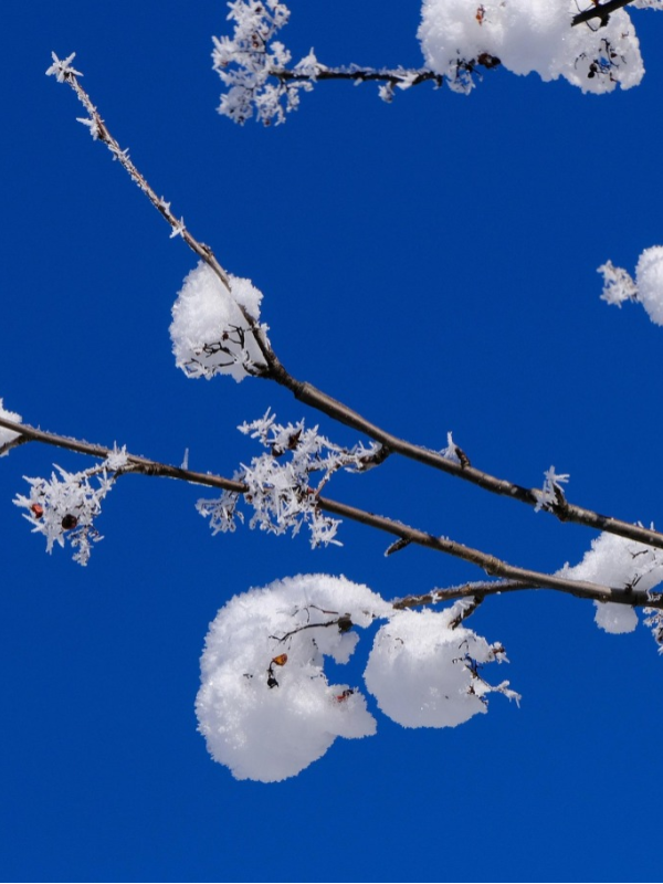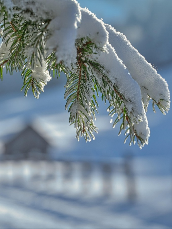 在经历了一场冬季暴雨和严寒之后,小镇仿佛凝固了,变成了冰城:道路、房屋和树木都被冰霜盖住了,一切好像变成玻璃状的物体,让人感觉不真实。
