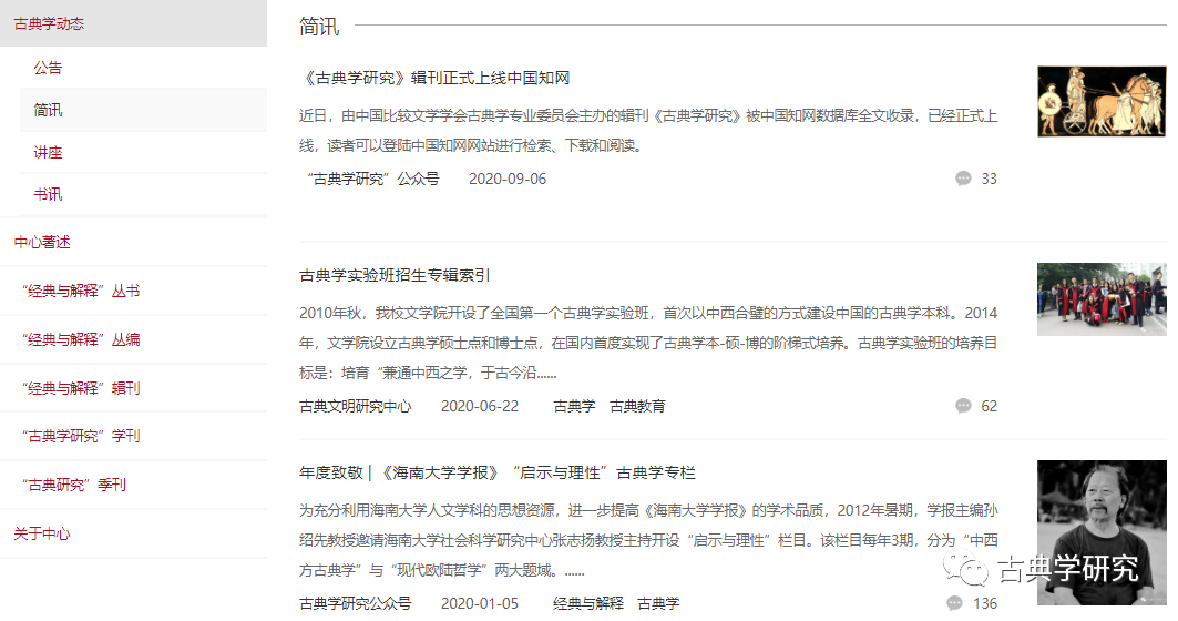 古典学动态下设四个子栏目。