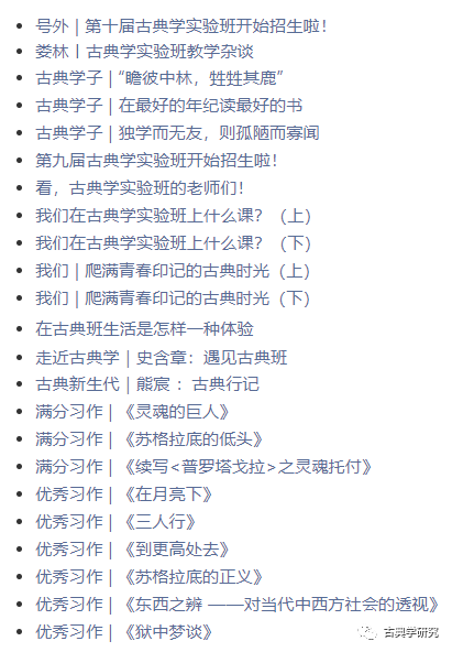 古典学实验班招生专辑索引