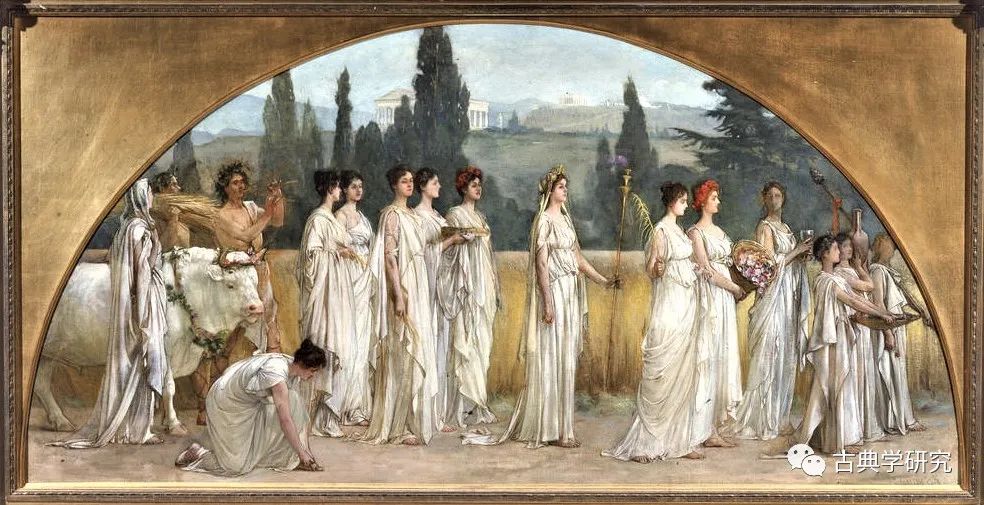 以这样的方式接近《公民大会妇女》,我强调的重点在于情节的结构和概念,而这种情节能体现出女权政治的术语和结果。如果一出戏剧的前提是抹去城邦中差异之间的界限,我更喜欢维持想象和真实之间的差异的界限,从而评估戏剧背后的动机是什么,既不屈服于一种完全的“社会性幻觉”,也不会如那奎特(Vidal-Naquet)明显地做的那样,屈服于一种简单的“文本性幻觉”(Vidal-Naquet[1979]页5-6。亦参Loraux[1991]页19)。既非对现实的真实反映,也非纯粹的形而上的符号,剧场中上演的“女人”形象,必须在过去和现在、传统和起源、主题和变种——旧谐剧就依赖于这些——之间更加模糊和更模棱两可的协商中去考虑。