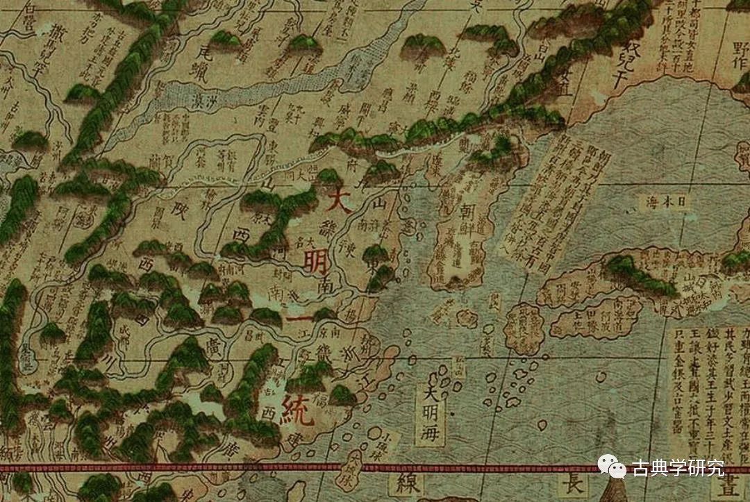 《坤舆万国全图》韩国实学博物馆藏本(下图为局部放大图)