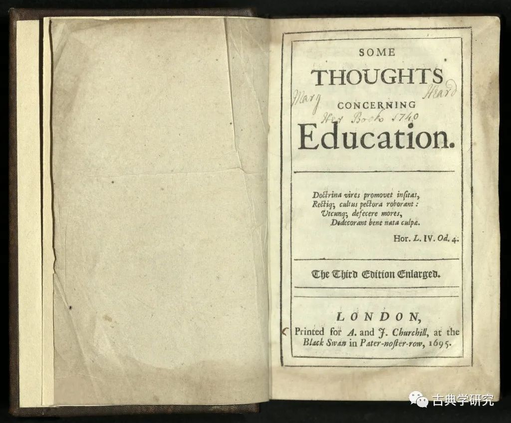 ▲ An 17th-century edition of Locke's Some Thoughts Concerning Education