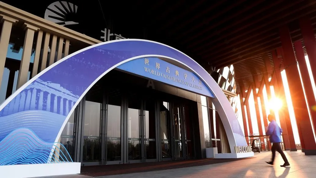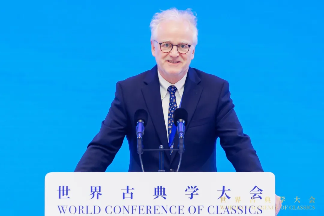 ▲ 2024年11月7日,首届世界古典学大会在北京雁栖湖国际会展中心开幕柯马丁(Martin Kern)教授在首届世界古典学大会上发表了题为“将早期中国纳入全球比较古代学范畴”(Making Early China Part of Global Comparative Antiquity)的主旨发言。
