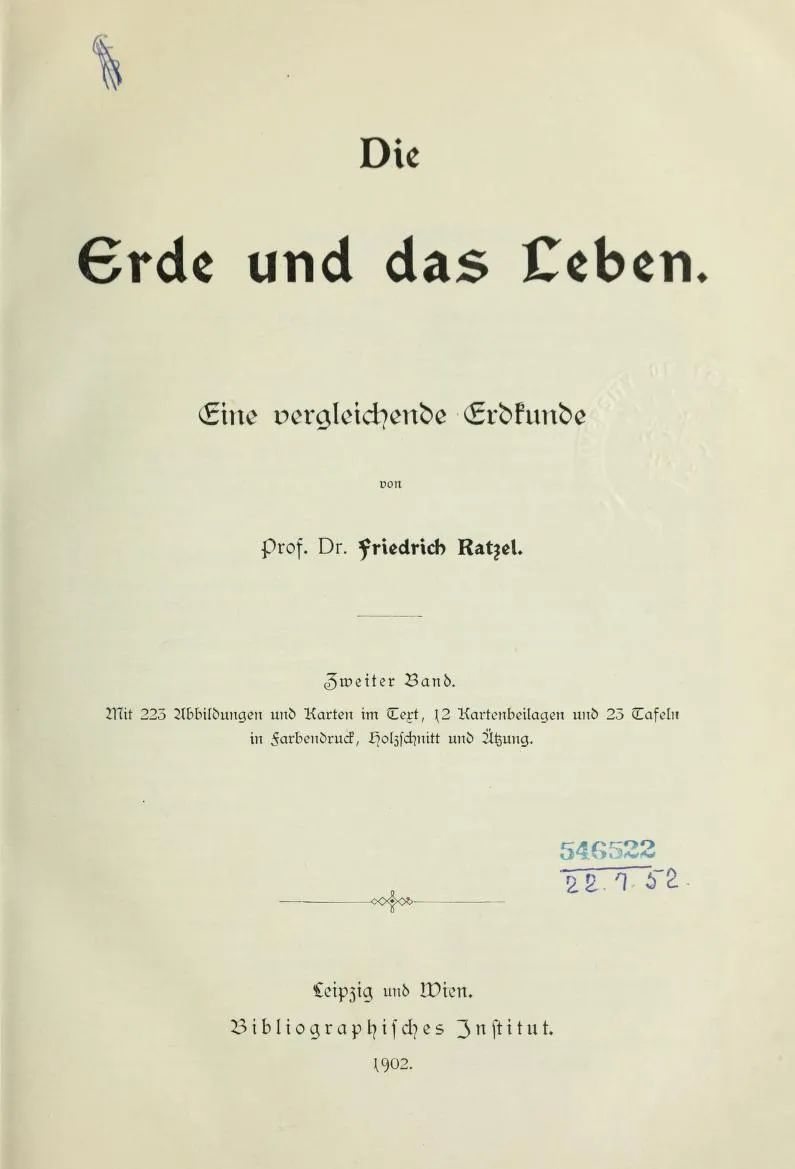 ▲ 拉采尔《人类地理学》第一卷,1882年