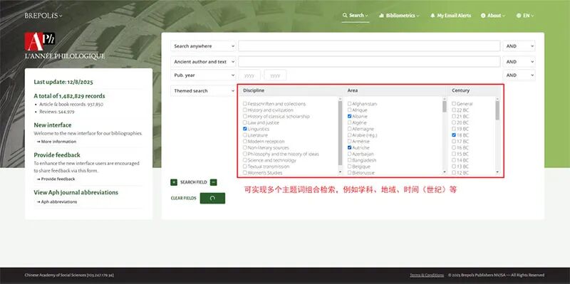 点击文末“阅读原文”,打开“古典学文献年鉴数据库”。