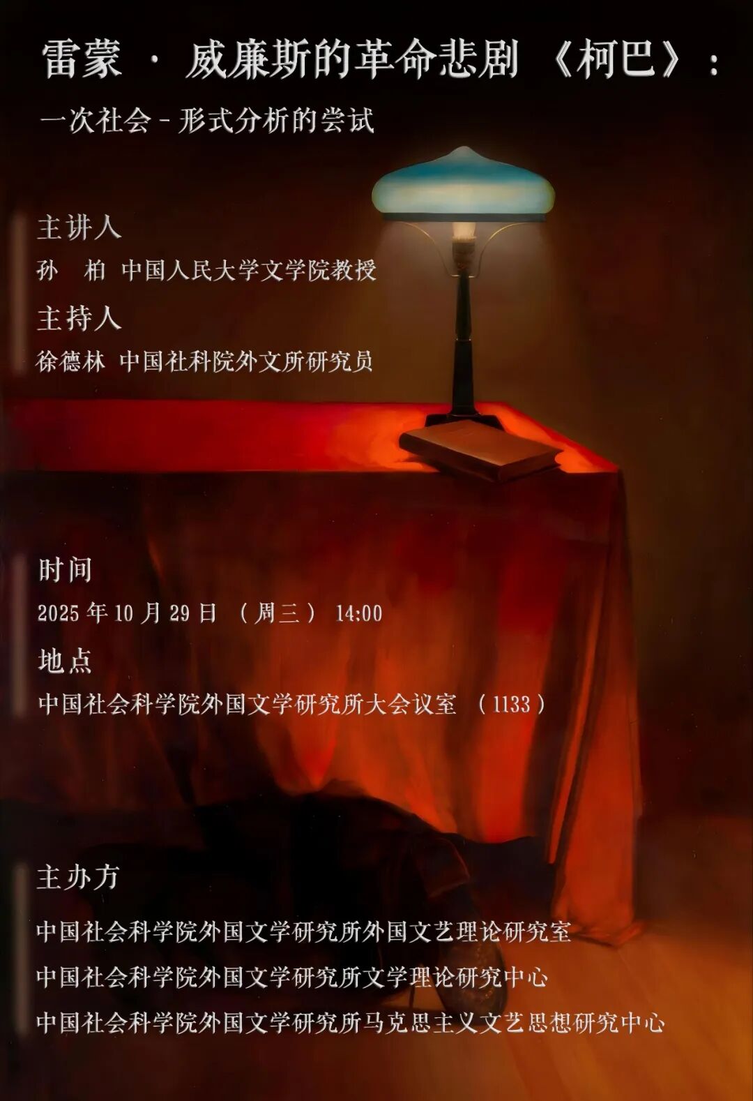 讲座题目:雷蒙·威廉斯的革命悲剧《柯巴》:一次社会-形式分析的尝试