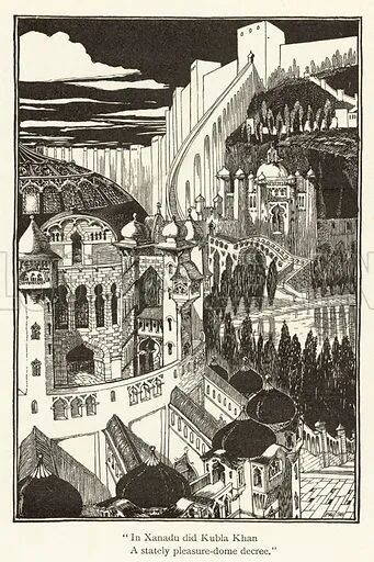 不过,作为梦者形象的不止是诗人自己,忽必烈汗也是。据洛斯考证,十三世纪的一份阿拉伯文献对忽必烈汗的上都曾有如下记载:“在那个都城的东边,建造了宫殿,其蓝图源自可汗所做的一个梦,梦中之景他记得清楚。”尽管此书的英译本略晚于1797年,但博闻强记、嗜书如命的柯勒律治很可能在英译本未正式流通前就已听过或读过此传说。在笔记中,柯勒律治称赞忽必烈汗是“人类有史以来所有民族、城邦和王国当中最伟大的王子”。因此,诗人和忽必烈汗一样,都是人类梦想的代表,只要人类尚存,梦想就不会停止,正如博尔赫斯所言:“第一个梦替现实世界增添了一座宫殿;五个世纪后做的第二个梦替世界增添了一首由梦引起的诗(或者诗的开头)……在几个世纪后的一个夜晚,会有某个人做同样的梦,并且相信别人也会梦到同样的景象,然后用大理石或音乐把梦境塑造出来。”